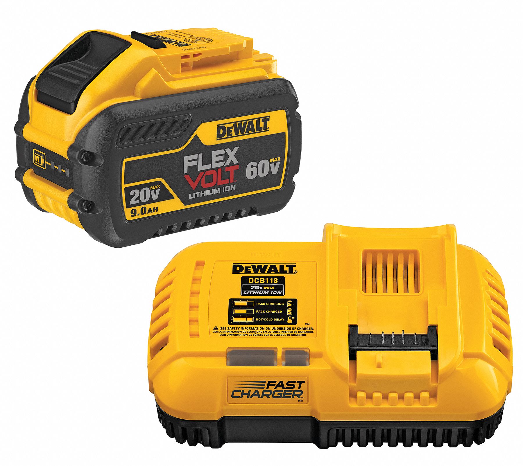 DEWALT Battery and Charger Kit, 9 Ah, LiIon, 20V DC/60V DC 54DC95DCB118X1 Grainger